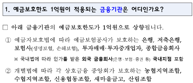예금자보호 한도 상향 1억 금융위원회 보도자료 확인하기