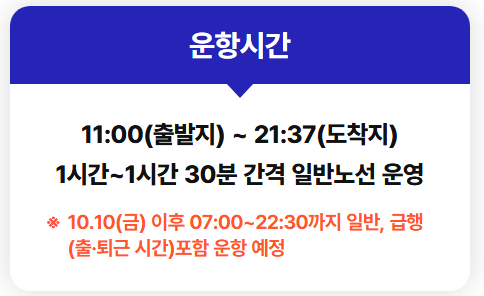 ➤ 운행시간: 오전 11시~오후 9시 37분, 하루 14회 운행