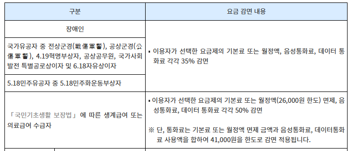 기초연금 수급자는 이동통신 요금에서 50% 감면을 받을 수 있습니다.