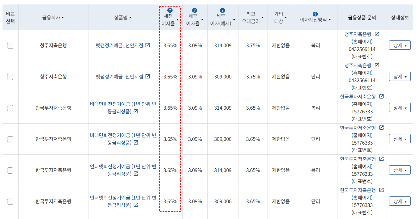 정기예금 금리비교 유의사항
