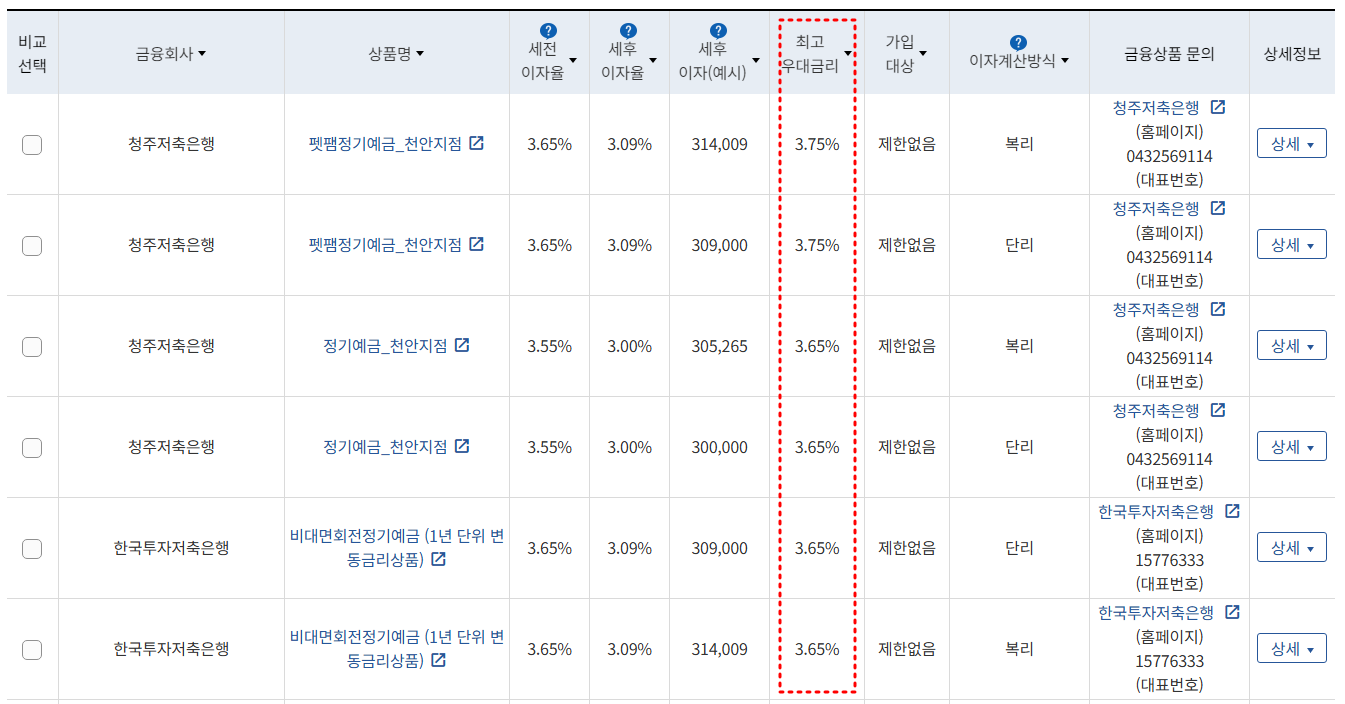 2024년 12월 26일 기준으로 최고 우대금리는 3.72%, 최고 세전금리는 3.65%로 확인할 수 있습니다. 입맛에 맞는 상품을 선택하시면 반드시 해당 지점에 문의를 해보시기 바랍니다.