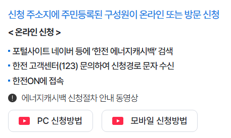한전 에너지 캐시백은 주택용 전력 고객만 신청 가능합니다.