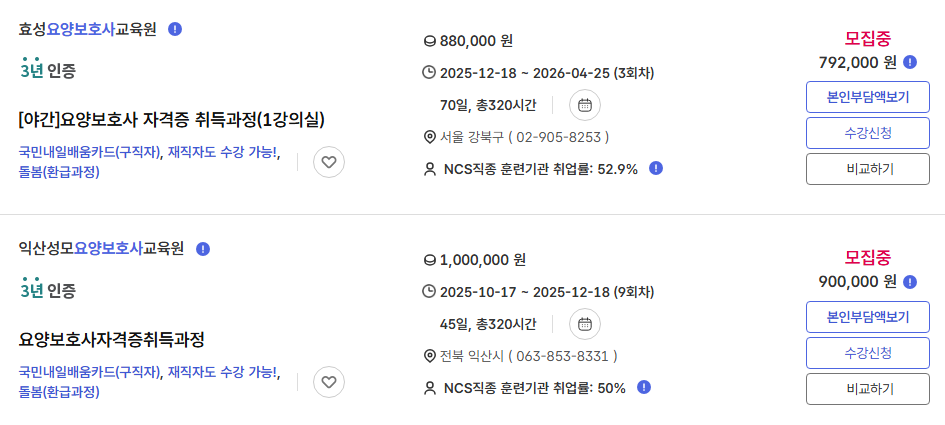 특히 국민내일배움카드를 활용하면 일정 조건 충족 시 교육비 환급까지 가능해 효율적인 재테크 수단이 될 수 있습니다. 국비 지원 요양보호사 과정은 지정 학원에서 신청할 수 있습니다.