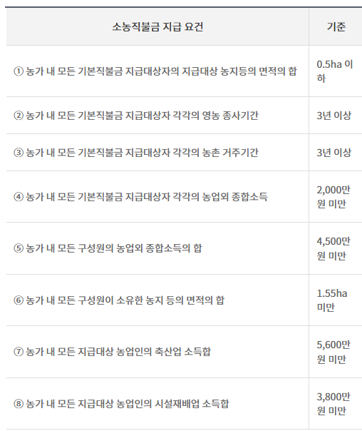 소농직불금은 영세농 중심으로 연 120만 원이 정액 지급되며, 단순하고 신청 절차도 간편합니다.