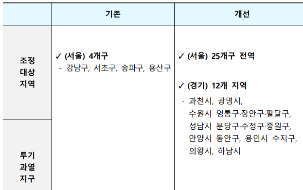 ➤ 서울 전역 및 경기 남부 12개 지역, 규제지역으로 신규 지정