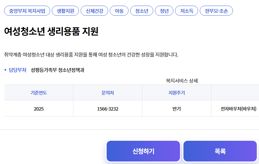 건강검진, 생리용품, 임신관리 등 항목별로 신청 기준이 다르므로 반드시 세부 항목을 확인해야 합니다.