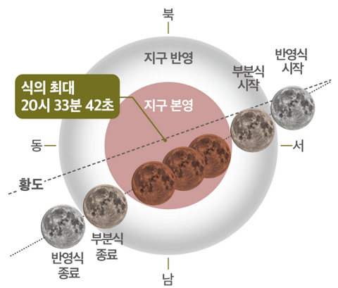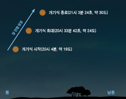 개기식은 오후 8시 전후에 시작되어 붉은 달이 완성됩니다.