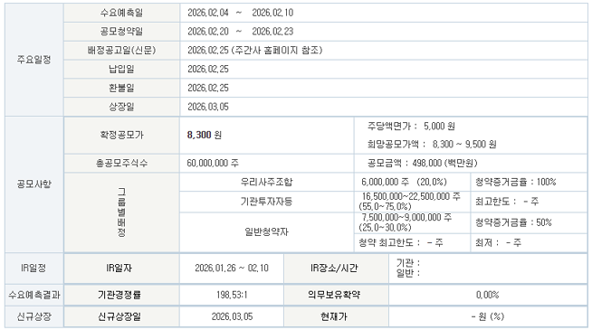 이는 상장 직후 매물 부담 요인으로 작용할 수 있습니다.