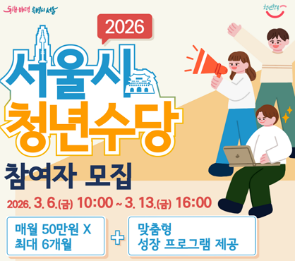 2026년 서울시 청년수당 신청 기간은 3월 6일 오전 10시부터 시작됩니다.