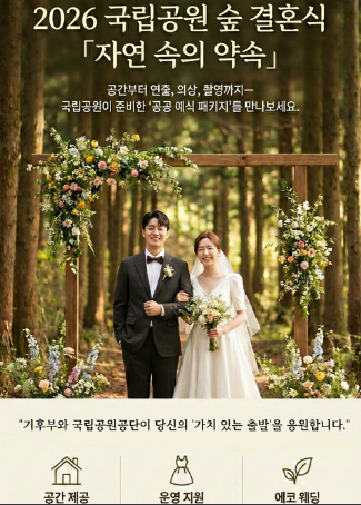 국립공원 숲 결혼식은 전국 국립공원 생태탐방원에서 진행되는 자연 친화 결혼식 프로그램으로 운영됩니다.