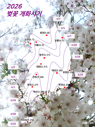 산림청과 웨더아이는 올해 봄꽃 소식을 공식 발표했습니다.
