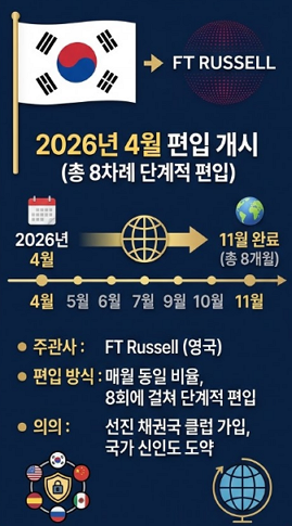 글로벌 투자자들의 원활한 국채시장 참여와 준비 기간 확보를 위해 실제 편입 개시 시점은 2026년 4월로 최종 확정되었습니다.