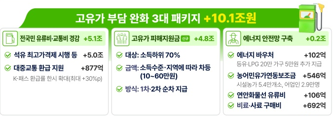 이 중 10조 1000억 원이 고유가 부담 완화 패키지에 온전히 사용됩니다.