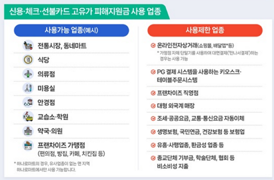 하지만 대형 마트와 백화점을 비롯하여 배달 앱과 같은 온라인 전자상거래 플랫폼에서는 결제가 철저하게 제한되고 있으므로 주의가 필요합니다.