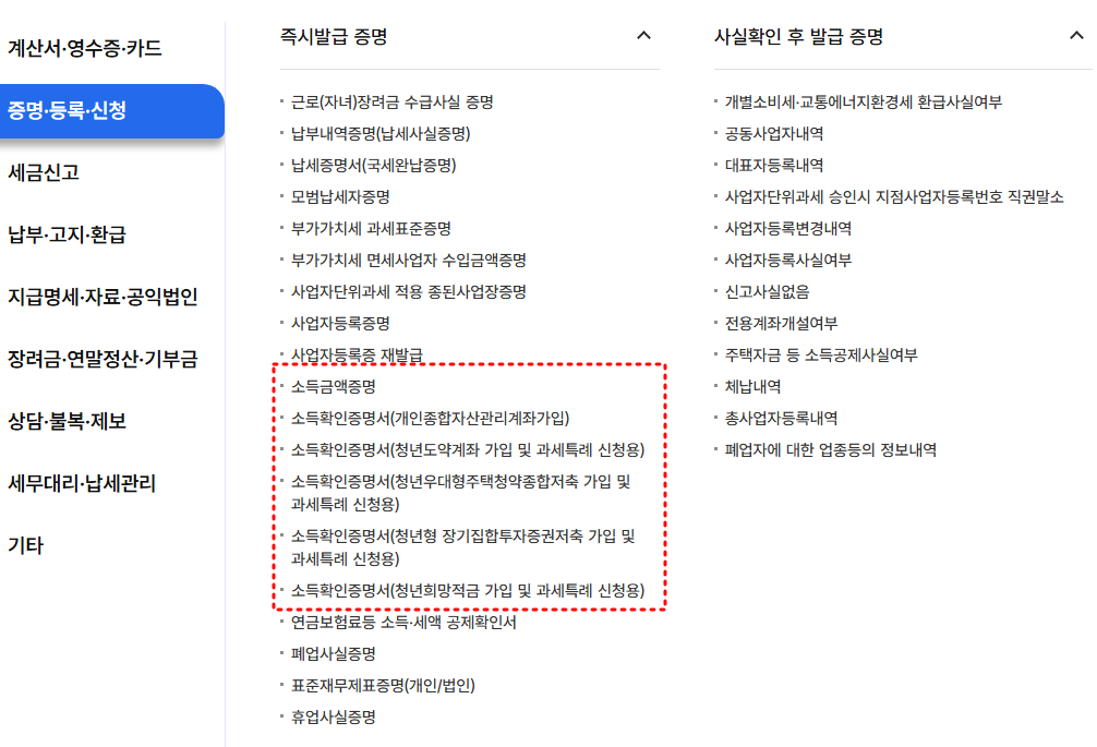 소득금액증명원은 발급 시점에 따라 신청 가능 여부가 달라질 수 있어요.