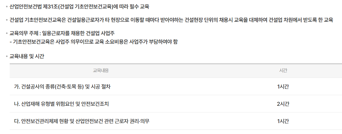 건설업 기초안전보건교육의 목적과 필요성