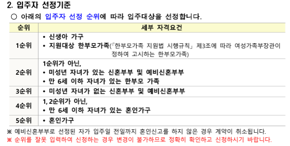 - 입주일 전날까지 혼인신고가 예정된 예비 신혼부부