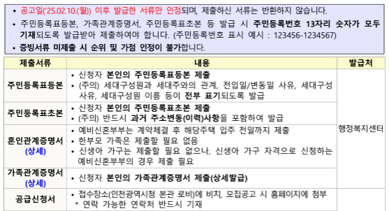 서류는 공고문을 기준으로 정확하게 준비해야 해요. 특히 소득 증빙 관련 서류는 최근 3개월 이내의 자료여야 하는 경우가 많으니, 준비할 때 유효 기간을 꼭 확인하는 것이 좋아요.