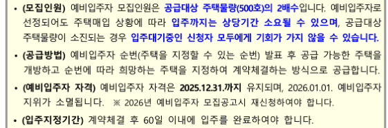 - 예비입주자로 선정된 후 취소하면, 다음 모집에서 불이익이 있을 수 있어요.