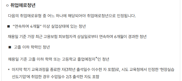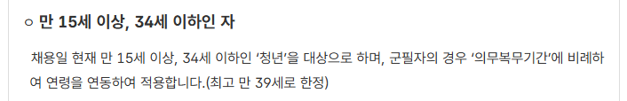 단, 일부 취약계층 청년(고용보장 이력이 적은 청년, 기초생활수급자, 중증 장애인 등)은 예외적으로 연령 기준을 초과해도 지원받을 수 있어요.