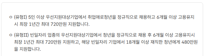 또한, 기업은 청년을 고용한 후 6개월 이상 계속 근무할 수 있도록 지원해야 하며, 일정 규모 이상의 임금을 지급해야 해요.