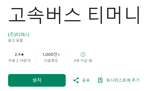 고속버스 티머니 앱 내려받기
