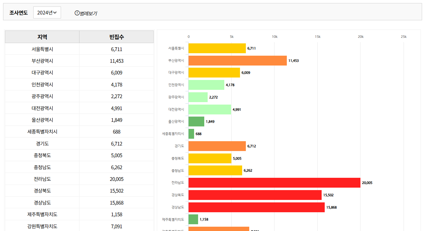 이제 전국의 빈집 현황을 한눈에 확인할 수 있어요.