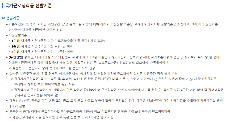국가근로장학금은 단순히 신청만 한다고 해서 모두 선발되는 제도는 아니에요.