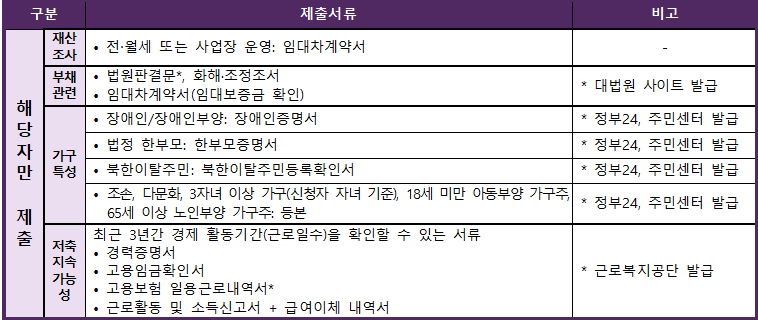 가구 소득 및 재산 요건