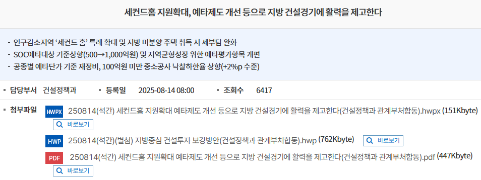 세컨드홈 특례지역 제도는 2025년 8월부터 확대 적용된 만큼 아직 초기 단계입니다.