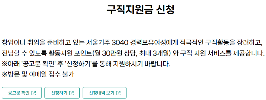 2025년 서울 우먼업 구직지원금 3차 공고문 확인하기