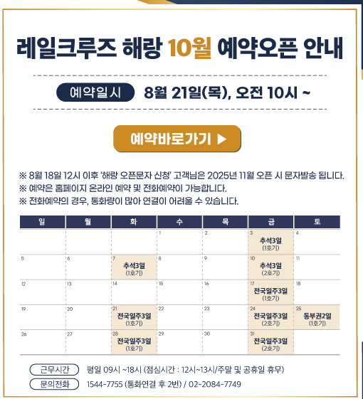 구체적인 일정은 레일크루즈 해랑 공식 홈페이지에서 확인할 수 있습니다.
